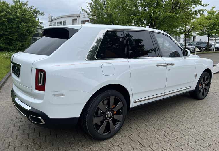 la Cullinan n’est pas un SUV classique. Son profil signe son appartenance à Rolls-Royce, avec une ligne carrée et la calandre verticale symbolique de la marque